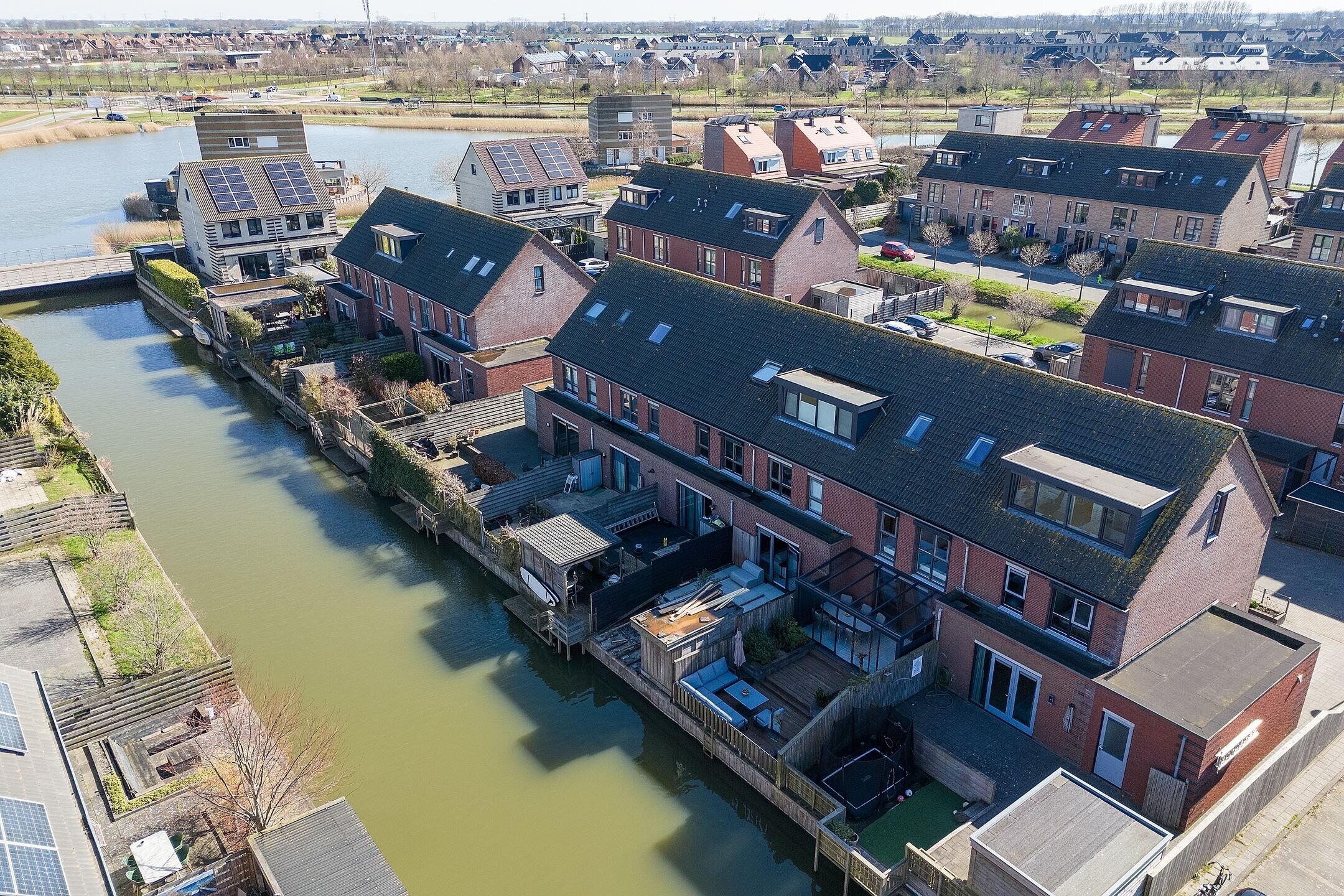 De woning beschikt over een voor- en achtertuin. De achtertuin ligt direct aan het water en is voorzien van een vlonder: een heerlijke plek waar je kunt ontspannen, een hengel uitgooien of een bootje aanleggen. Door de autoluwe ligging kun je ook gerust aan de voorzijde zitten, wat extra leefruimte buiten biedt.